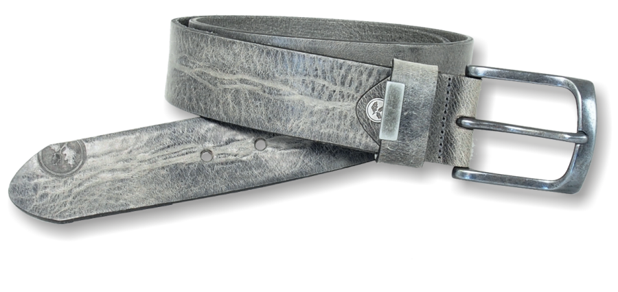 Ryan ist ein 44mm breiter sehr markanter Jeans Gürtel aus einem speziellen Rindleder, das eine Vintage Wachsschicht aufweist. Dieses Modell bieten wir neben Braun und Cognac, auch in Grau an, passend zu vielen grauen Schuhen.